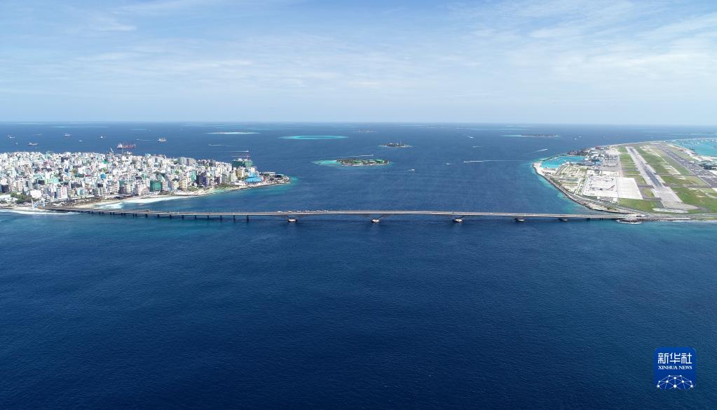 這是在馬爾代夫航拍的連接首都馬累和機(jī)場島的中馬友誼大橋(2019年8月30日攝)。新華社發(fā)(王明亮 攝)