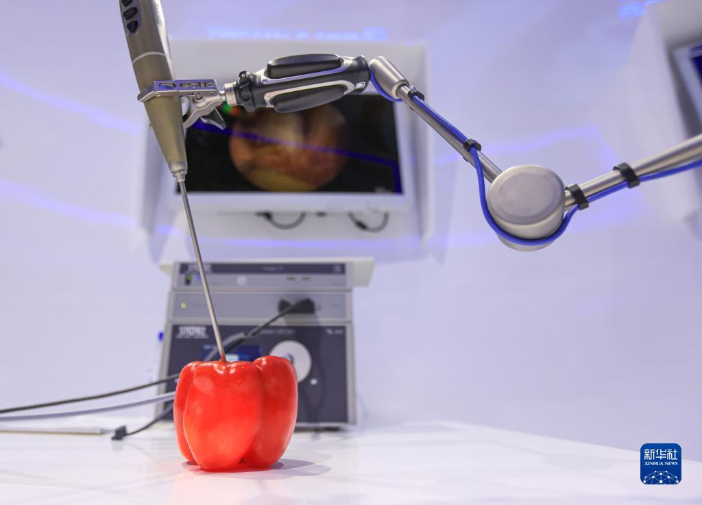 11月7日在第五屆進博會德國卡爾史托斯展臺拍攝的電子內(nèi)窺鏡。新華社記者 李京 攝