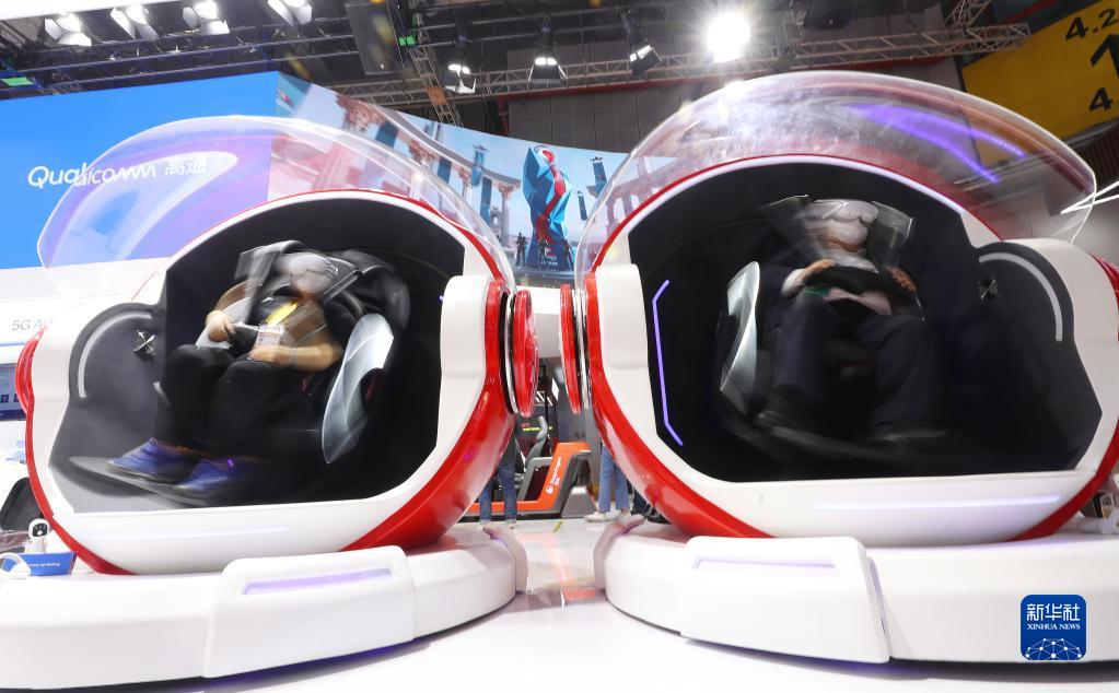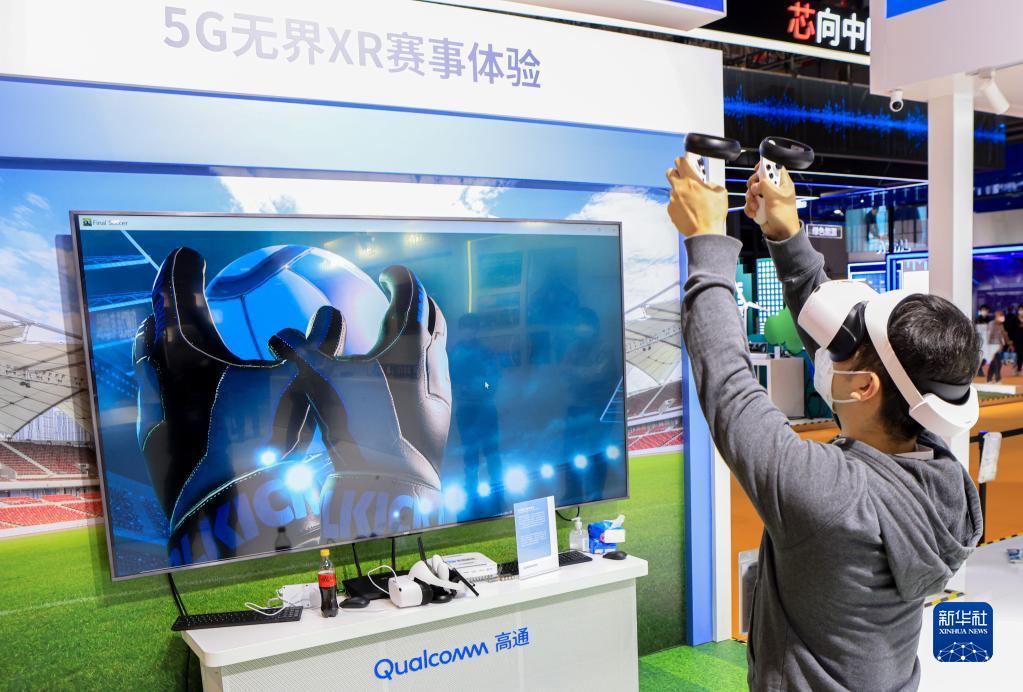 11月7日,參觀者在第五屆進博會美國高通公司展臺參與5G無界XR賽事體驗。新華社記者 李京 攝