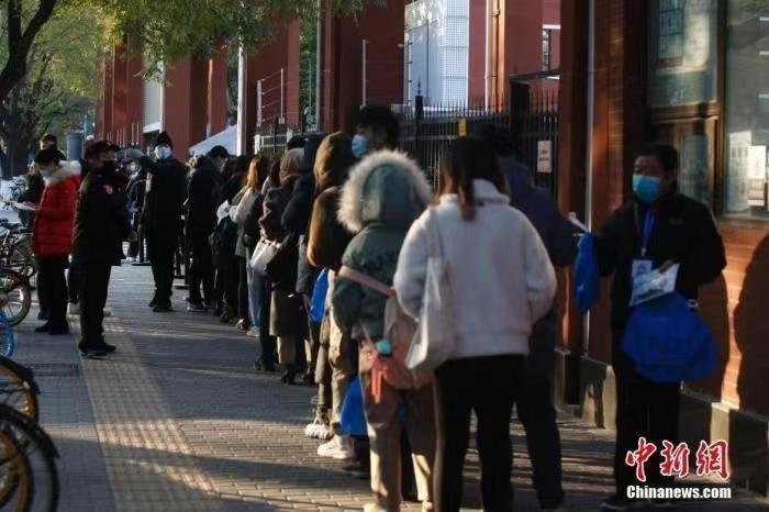 資料圖:公務(wù)員考試考場(chǎng)外,工作人員核驗(yàn)考生信息。 中新社記者 蔣啟明 攝
