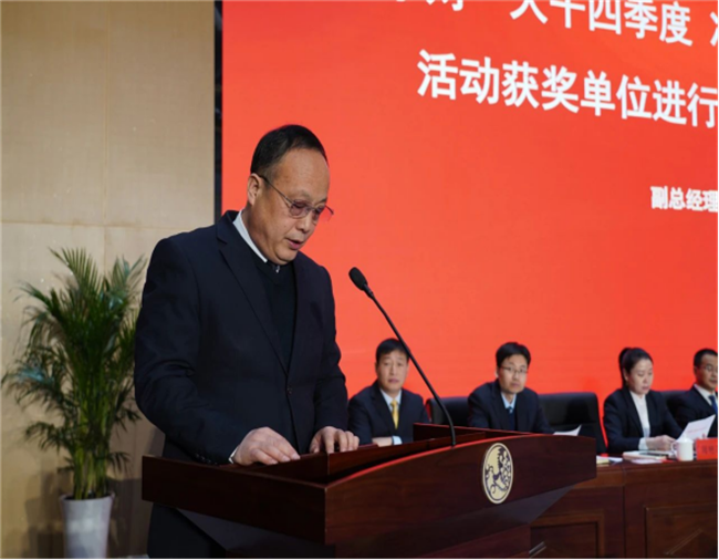西鳳股份公司副總經(jīng)理師紅勤宣讀《關(guān)于對“大干四季度 沖刺全年目標(biāo)任務(wù)”競賽活動獲獎單位進(jìn)行表彰獎勵的決定》