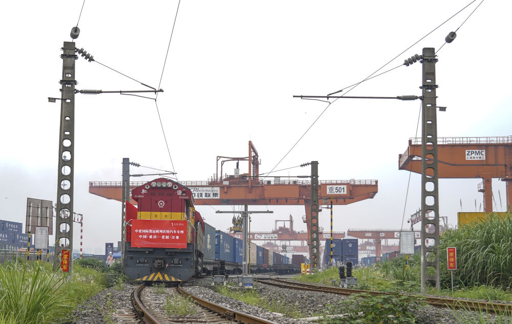 中老國際貨運班列慶鈴汽車專列從重慶團結(jié)村車站駛出(2022年6月8日攝)。新華社記者 黃偉 攝