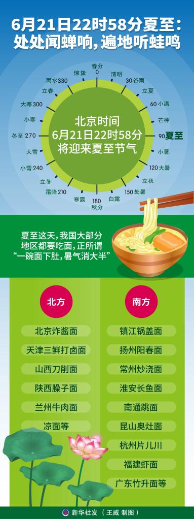 新華社天津6月20日電(記者周潤健)“綠筠尚含粉,圓荷始散芳”。北京時間6月21日22時58分將迎來夏至節(jié)氣,標(biāo)志著蛙鳴陣陣、蟬吟聲聲、荷韻飄香的盛夏來臨了。