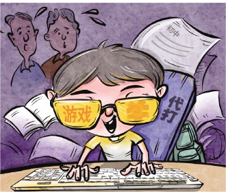 可好景不長,“雙雙”因為打游戲時間過長,學(xué)習(xí)成績一塌糊涂,經(jīng)常被老師拉去單獨談話。但她對老師的批評左耳朵進右耳朵出,回家后仍是將書包一扔,熟練地啟動電腦開始打游戲。