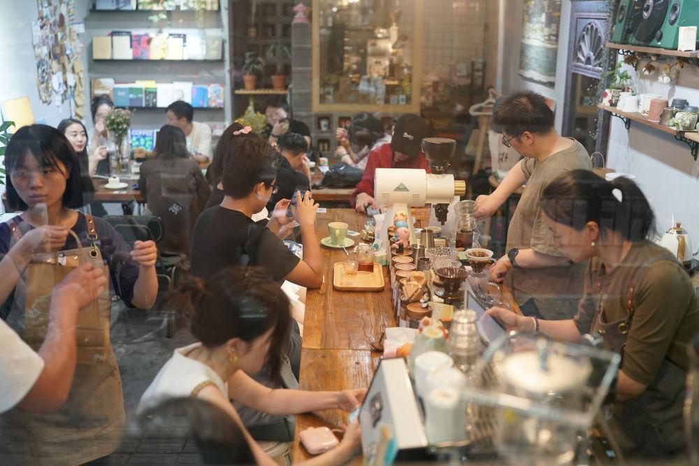 7月29日,消費(fèi)者在西安市一家咖啡館內(nèi)消費(fèi)。新華社記者 邵瑞 攝