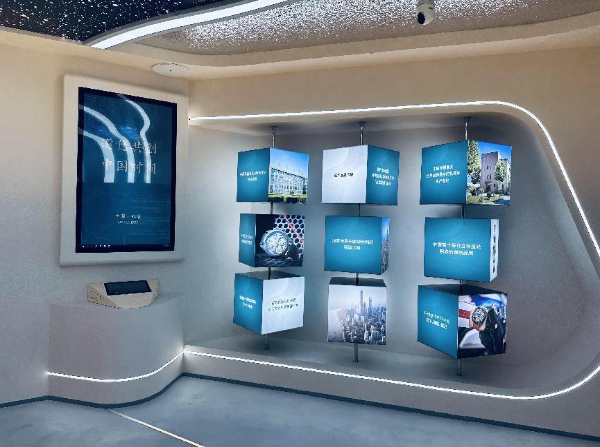 孔雀表業(yè)集團(tuán)展示中心分為“時(shí)光記憶”、“隧道時(shí)空”、“制造共鑒”、“孔雀譽(yù)行”、“智造未來”五大主題區(qū)域。富有現(xiàn)代化科技特色的整體設(shè)計(jì)風(fēng)格,與孔雀表業(yè)集團(tuán)本身的智造技術(shù)實(shí)力及未來規(guī)劃達(dá)成了巧妙的融合,又在時(shí)光敘事與智慧互動(dòng)的過程中,以沉浸式的方式映射孔雀表業(yè)集團(tuán)智造化藍(lán)圖,讓觀者在時(shí)間的流轉(zhuǎn)更替中感受現(xiàn)代化制造業(yè)工廠的發(fā)展變化,以及孔雀表業(yè)集團(tuán)在工業(yè)大數(shù)據(jù)、綠色工廠、智能智造等多方面的發(fā)展?jié)摿Α?/div>