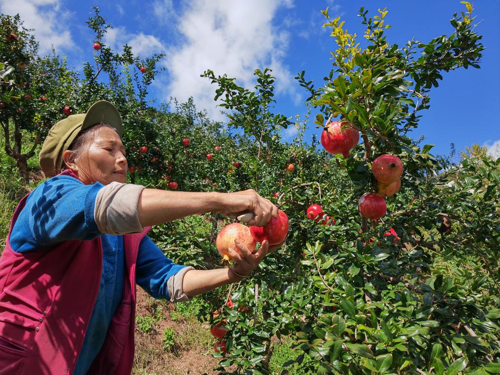 9月19日,會理市彰冠鎮(zhèn)魁閣村,石榴采摘場景。新華社記者江毅 攝