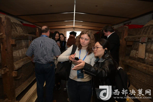 采訪團(tuán)先后參觀了陜西省重點(diǎn)文物保護(hù)單位西鳳酒釀酒舊址,西鳳酒文化館、酒海庫(kù),制酒、制曲、成品包裝車(chē)間,體驗(yàn)西鳳酒非遺釀造技藝及絲綢之路酒類(lèi)運(yùn)輸工藝“酒海”貯存運(yùn)輸,仔細(xì)了解了西鳳美酒的釀造過(guò)程,傳統(tǒng)的釀造技藝和獨(dú)有的儲(chǔ)酒容器。大家穿漢服,打卡西鳳酒國(guó)家工業(yè)旅游基地,品味3000年無(wú)斷代傳承的醇香味道,對(duì)優(yōu)美的廠區(qū)環(huán)境、現(xiàn)代化的工廠、非遺匠心釀造、國(guó)保大酒海儲(chǔ)存、16999老五甑工藝、智能機(jī)器人應(yīng)用等,表現(xiàn)出濃厚的興趣,并嘖嘖稱(chēng)贊。
