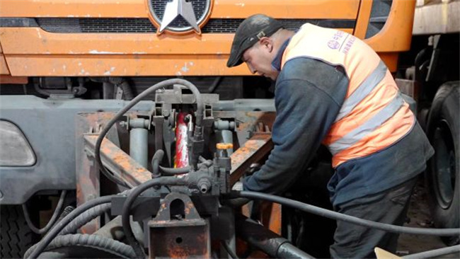 同時,車隊維修班組也在加緊對所有車輛進行全面健康“大體檢”。車庫內(nèi),維護人員正在對設(shè)備車輛的傳動軸、液壓、制動、電路等進行重點保養(yǎng)、檢修,針對老化損壞的線路和設(shè)備零部件進行維修更換。