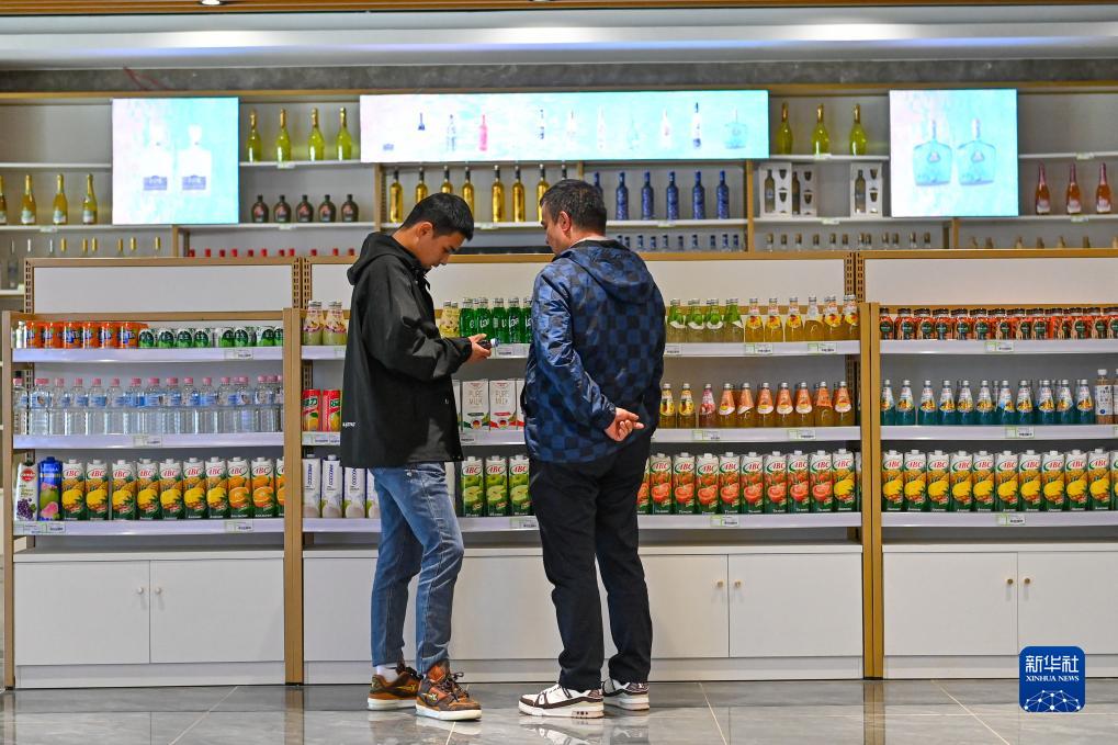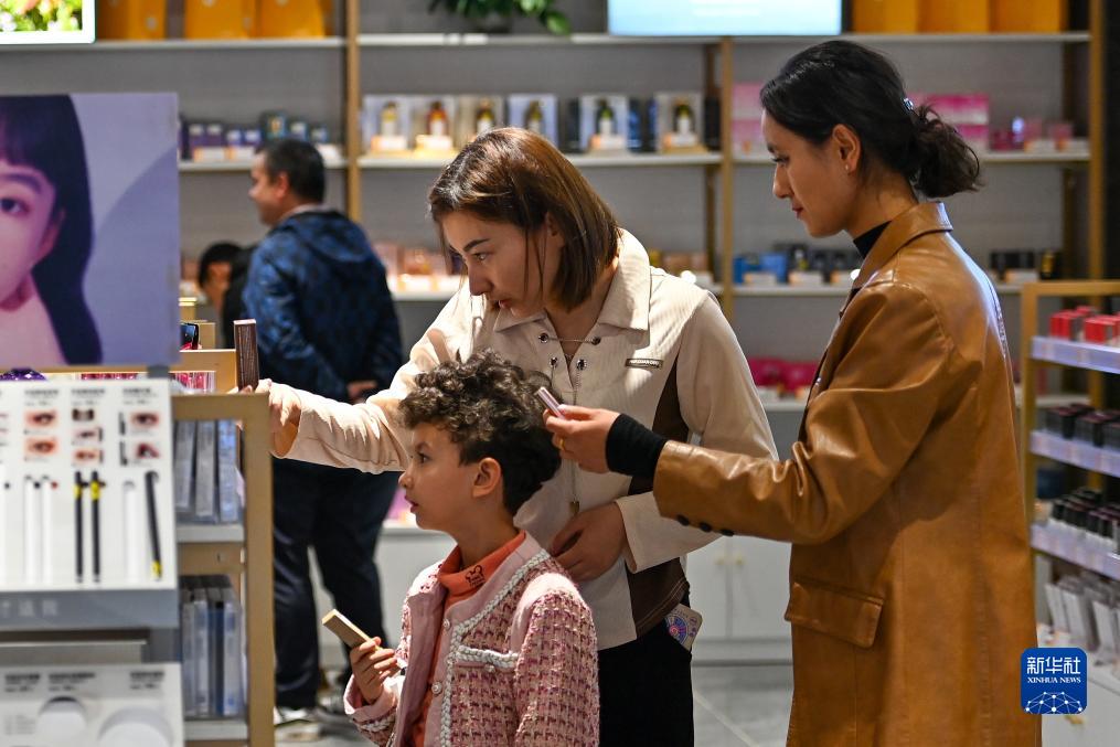 顧客在新疆喀什跨境電商進出口商品展示交易中心挑選商品(11月4日攝)。