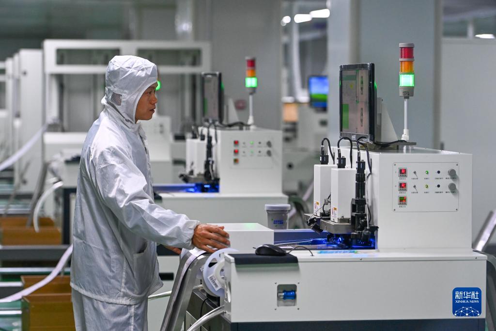 工作人員在新疆喀什綜合保稅區(qū)內(nèi)的一家電子科技公司生產(chǎn)車間作業(yè)(11月4日攝)。