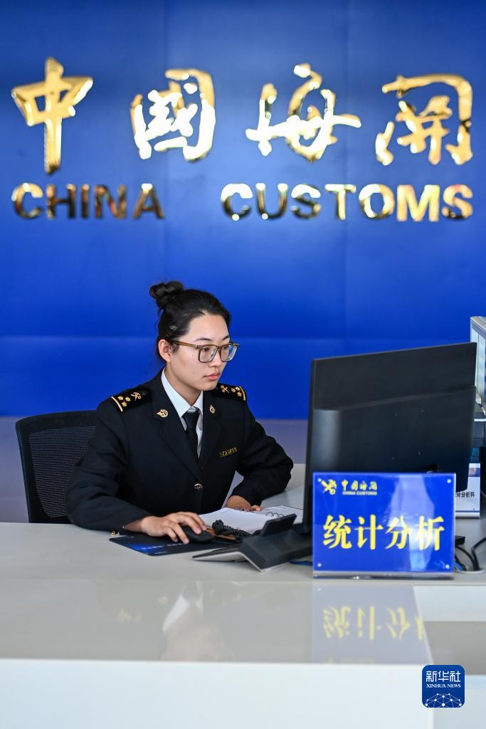 喀什海關關員在新疆喀什海關一站式業(yè)務大廳辦理業(yè)務(11月4日攝)。