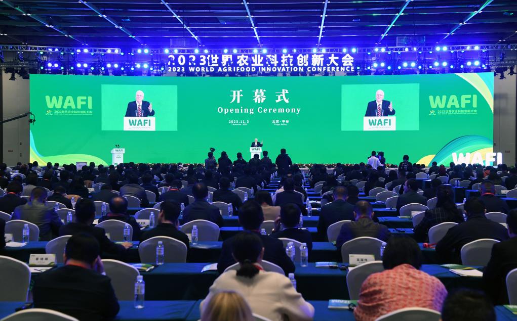 11月3日,世界糧食獎基金會榮譽(yù)主席肯尼思·奎因在2023世界農(nóng)業(yè)科技創(chuàng)新大會開幕式上致辭。新華社記者 任超 攝