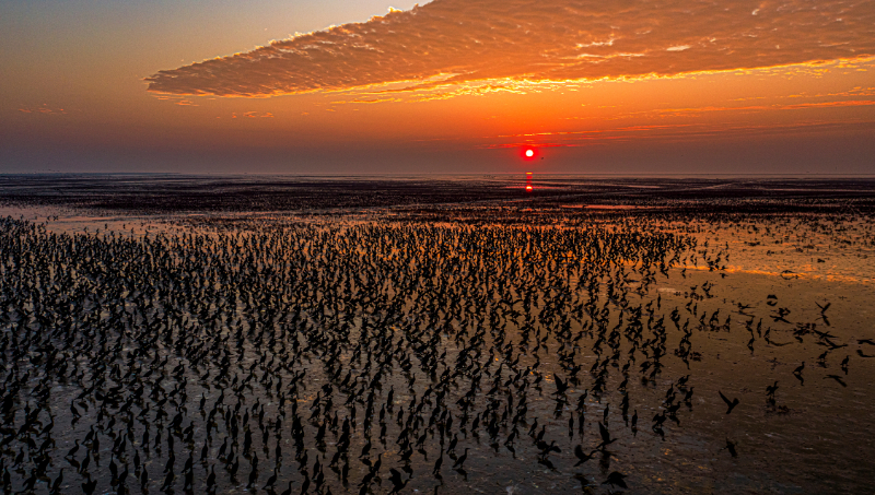 山東黃河三角洲自然保護區(qū)內(nèi)的候鳥集群 張曉龍攝(國家林草局供圖)