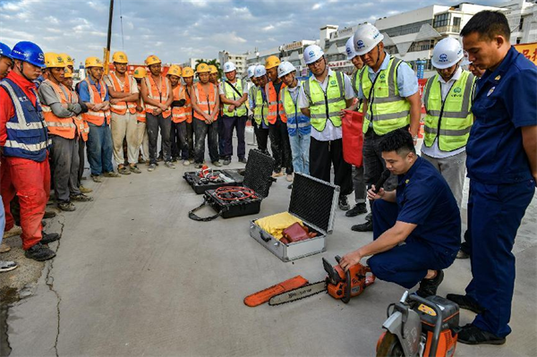 11月9日是第32個(gè)全國(guó)消防日。這次消防演練模擬火災(zāi)發(fā)生后如何使用干粉滅火器、干沙滅火,生活區(qū)宿舍起火員工俯身毛巾捂住口鼻逃生、昏迷受傷員工的轉(zhuǎn)移救治,以及消防救援機(jī)構(gòu)的介入救援等方面進(jìn)行演練。項(xiàng)目監(jiān)理單位點(diǎn)評(píng)時(shí)認(rèn)為,此次演練基本上是按照實(shí)景進(jìn)行的,進(jìn)一步增強(qiáng)了項(xiàng)目的應(yīng)急應(yīng)變、團(tuán)隊(duì)協(xié)調(diào)和處置保障能力,為應(yīng)對(duì)突發(fā)事件積累寶貴經(jīng)驗(yàn),保證安全生產(chǎn)工作全面落實(shí)。