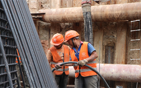 為確保本次混凝土澆筑施工安全順利完成,項目部集中組織現場管理人員和協(xié)作隊伍,對施工方案進行詳細討論、學習,總結前期施工經驗,完善各工序銜接,對人員配置及分工進行精細化部署,細化節(jié)點目標,明確責任。澆筑過程中,嚴格控制混凝土入模速度,緊盯混凝土振搗質量,專人盯控,確保了61#主墩承臺的安全順利澆筑。