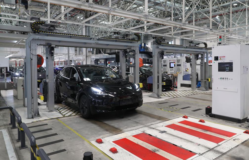 12月22日,在特斯拉上海超級(jí)工廠(chǎng)內(nèi),一輛特斯拉電動(dòng)汽車(chē)在進(jìn)行出廠(chǎng)前的車(chē)載電子設(shè)備檢測(cè)。新華社記者方喆 攝