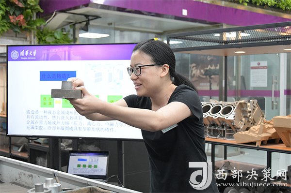 “取出這個氣孔針,扎到什么位置,放在哪里,還記不記得?”2021年,清華大學基礎工業(yè)訓練中心的鑄造課短視頻在社交平臺上走紅,獲得百萬點贊。授課老師扎著馬尾,穿一身黑色T恤,身前是堆滿黑色粉末的操作臺。“位置確定了,深度怎么確定?看,用氣孔針量一下剩下的距離。”她一邊拿著工具在操作臺側比劃著一邊說道,“手指向下8到10個毫米,咱們扎氣孔。”動作行云流水,一氣呵成。