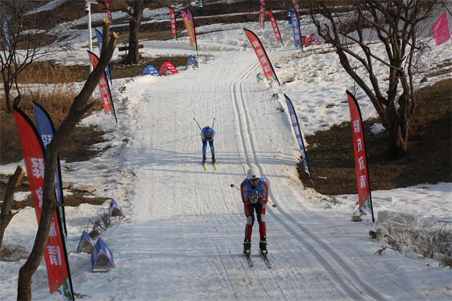 隨著開賽指令的發(fā)出,運動員們依次從起點出發(fā),比賽現(xiàn)場彩旗飄揚,穿著滑雪服的參賽運動員精神抖擻、英姿颯爽,在雪地上留下一道道優(yōu)美的弧線,在皚皚白雪中展開激烈角逐,上演一場速度與激情碰撞的冰雪盛宴,給即將到來的新春佳節(jié)增添了喜慶色彩。