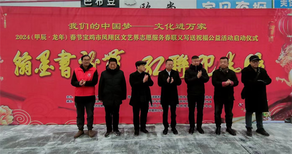 西部決策網(wǎng)訊(記者劉玉 韓宗憲 通訊員 閆芝羽)2月2日,“我們的中國(guó)夢(mèng)·文化進(jìn)萬(wàn)家”——2024春節(jié)寶雞市鳳翔區(qū)文藝界志愿服務(wù)春聯(lián)義寫(xiě)送祝福公益活動(dòng)啟動(dòng)儀式在區(qū)政府大門西側(cè)廣場(chǎng)舉行,區(qū)委常委、宣傳部部長(zhǎng)賈亞斌出席活動(dòng)啟動(dòng)儀式。