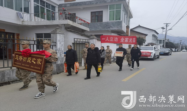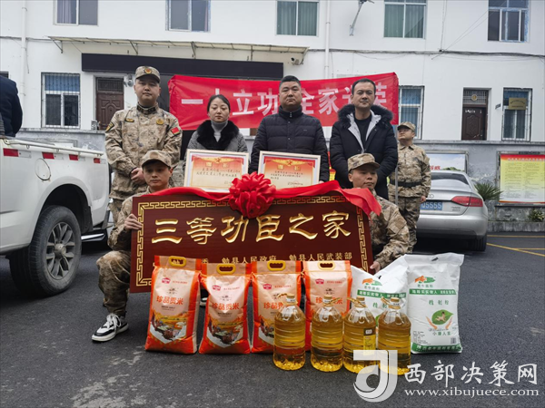 西部決策網(wǎng)訊 喜報送到家,榮譽(yù)獻(xiàn)功臣。春節(jié)前夕,現(xiàn)役軍人李洋、夏梟和他的家人收到了一份特殊的“禮物”。勉縣退役軍人事務(wù)局、阜川鎮(zhèn)主要領(lǐng)導(dǎo)、鎮(zhèn)人武部和鎮(zhèn)退役軍人服務(wù)站及村“兩委”有關(guān)負(fù)責(zé)人,專程將立功喜報、三等功臣之家牌匾送到李洋、夏梟的家中,為他送上榮譽(yù)和祝福。