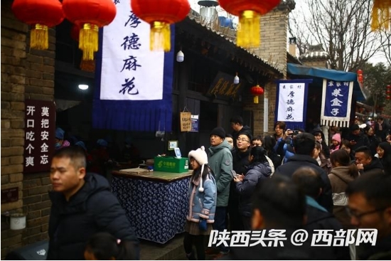 臺上唱著皮影戲,呷一口老碗茶舌底流香;走上小吃街,剛出鍋的麻花、醪糟、酸奶,熱氣騰騰的粉絲湯羊血、地道的陜西涼皮……都讓來自四面八方的食客眼花繚亂。