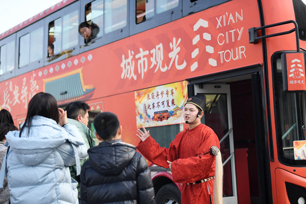 “春節(jié)期間,我們共計(jì)25輛觀光車(chē)每天跑將近80班次,基本都是提前在線(xiàn)訂滿(mǎn)的狀態(tài)。”西安城市觀光汽車(chē)運(yùn)營(yíng)管理有限公司總經(jīng)理助理董瑤告訴記者,這一旅游項(xiàng)目近兩年來(lái)累計(jì)接待游客50萬(wàn)人次,開(kāi)通運(yùn)營(yíng)城市觀光線(xiàn)路8條,在今年春節(jié)假期開(kāi)行了龍年新春主題車(chē)、“長(zhǎng)安尋夢(mèng)”主題車(chē)、全國(guó)首輛唐詩(shī)主題車(chē)、秦腔主題車(chē)等10多個(gè)主題車(chē)輛,以滿(mǎn)足游客的多樣化需求。