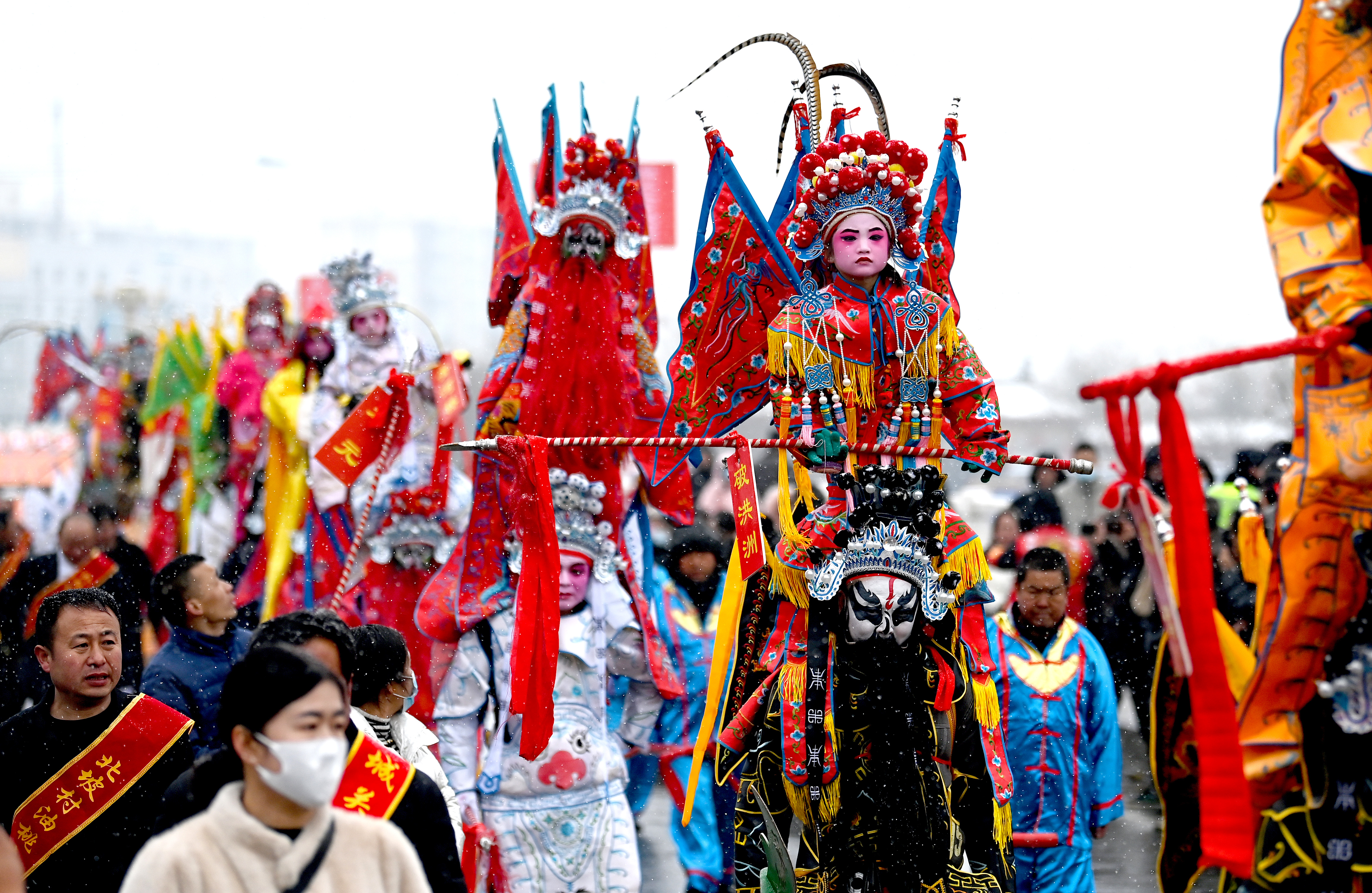 2月22日,在隴州社火過大年暨陜西省民間社火展演上,隴縣芯子社火在進(jìn)行巡游。新華社記者劉瀟攝
