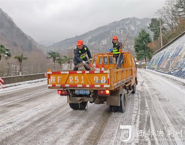 西部決策網(wǎng)訊 受強(qiáng)冷空氣影響,2月21日開(kāi)始,寧強(qiáng)縣出現(xiàn)降雪天氣。根據(jù)氣象預(yù)警,寧強(qiáng)縣公路段提前組織好保暢人員和除雪機(jī)械,備好融雪劑、防滑料,隨時(shí)待命。雪情來(lái)臨后,寧強(qiáng)公路段以雪為令,聞雪而動(dòng),迅速啟動(dòng)應(yīng)急保暢預(yù)案,及時(shí)開(kāi)展除雪保暢作業(yè),全力保障轄區(qū)108國(guó)道安全暢通。