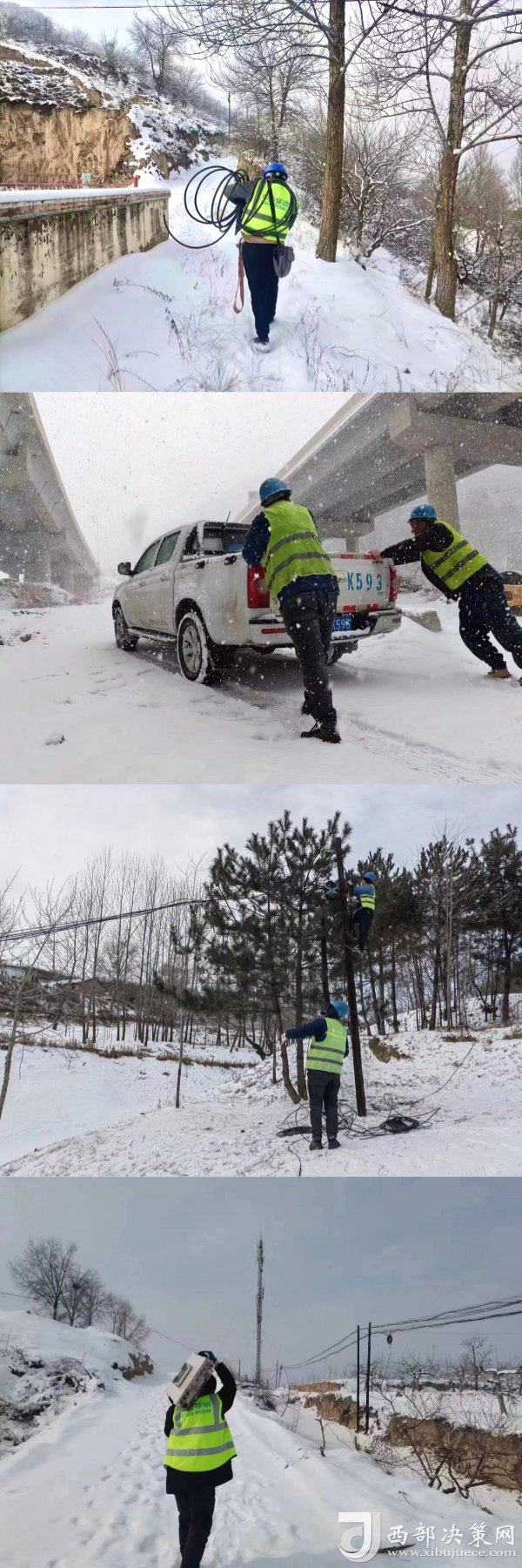 西部決策網(wǎng)訊(記者馬瑞 通訊員 白默可) 近日,在陜西延安,氣溫驟降,凍雨夾雜著雪花漫天飛舞,這對延安市通信保障和線路安全提出了嚴峻的考驗,電力線路出現(xiàn)故障導致基站停電,延安移動立即啟動應急保障預案,面對凍雨冰雪,延安移動時刻繃緊這根弦,以“時時放心不下”的高度責任感,做好冰雪天氣通信保障各項工作。
