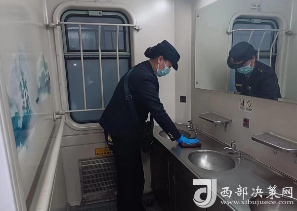 途中,深圳五組的值班職工在列車長的布置指導(dǎo)下,利用停站與停站之間長大區(qū)段,齊心協(xié)力地對這趟列車進行了一次全面的衛(wèi)生清理維護。列車長在班前會上,針對列車不同部位的工作進行了詳細的分工,從列車洗臉間,衛(wèi)生間,廁所,通過臺,電茶爐等等都有專人負(fù)責(zé)。盡管運行途中清理維護車內(nèi)衛(wèi)生有些難度,但這些列車員們并沒有退縮,用他們的作業(yè)標(biāo)準(zhǔn)立即投入到緊張而有序的常態(tài)化衛(wèi)生清理工作中。