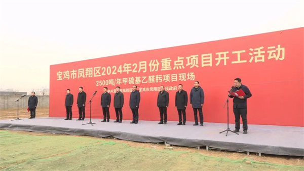 新年伊始,鳳翔區(qū)2024年2月份重點項目集中開工儀式在年產(chǎn)2500噸甲硫基乙醛肟項目現(xiàn)場舉行??偼顿Y7.04億元,年度計劃投資1.74億元的甲硫基乙醛肟、乳化炸藥生產(chǎn)線局部安全技術(shù)升級改造、寶雞市公安局鳳翔分局石家營派出所建設(shè)等11個重點項目集中開工。
