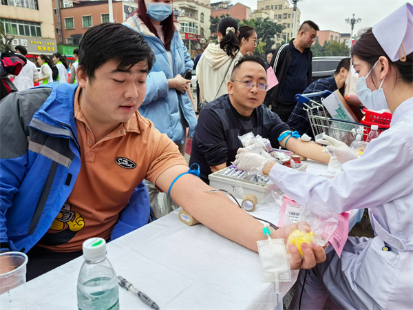在廣州市白云區(qū)第二人民醫(yī)院無償獻(xiàn)血活動(dòng)現(xiàn)場(chǎng),志愿者們?cè)卺t(yī)務(wù)人員的指引下有序排隊(duì),填寫登記表、測(cè)量血壓、抽血化驗(yàn)、完成采血等一系列程序,隨著一股股鮮血緩緩流入血袋,志愿者們濃濃的愛心也傳遞了出去。