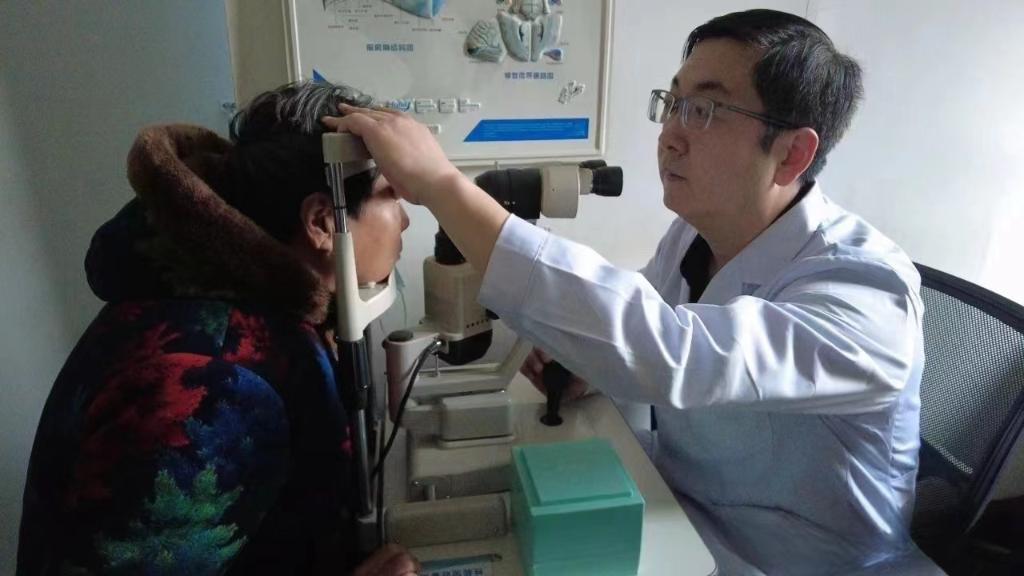 2024年2月20日,青海省人民醫(yī)院眼科副主任醫(yī)師祁恩在為患者診療。(受訪(fǎng)者供圖)