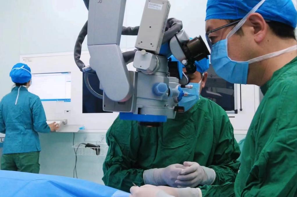 2024年2月19日,青海省人民醫(yī)院眼科副主任醫(yī)師祁恩在為青光眼患者手術(shù)。(受訪(fǎng)者供圖)